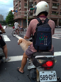 我也曾多次,騎車載你回我的住處(中山區),感覺你喜歡被機車載、兜風吐著舌頭的樣子似乎很享受?然後,我和另一伴再帶你用走路的方式回饒河夜市老家,大約要花2小時,謝謝你陪我們走路才不無聊。