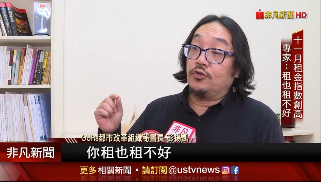 OURs都市改革組織秘書長彭揚凱:「像我們的央行總裁也講了,買不起就來租,可是他們沒有搞清楚是,因為我們的租屋就是一個這樣的黑市狀況時候,你租也租不好,我們認為,整個台灣的租屋市場要整個改善,要有兩方面來做,想辦法讓所有的租屋行為浮上檯面,(另外)我們應該想辦法讓那些空置囤積的房子,拿出來出租,進入出租市場。」
